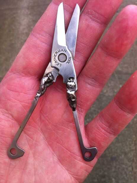 Con un poco de soldadura y usted todavía puede usar las tijeras... Te juro mi primer soldaduras parecían soldaduras perfecta! Pero luego he llevado a distancia tratando de hacerlos un poco más fuerte. Lo hice por diversión sólo para práctica de soldadura algo tan pequeño. Iba a tirar las tijeras. Me sorprende que el calor no distorsionar las cuchillas. Ahora las tijeras son realmente muy útiles.