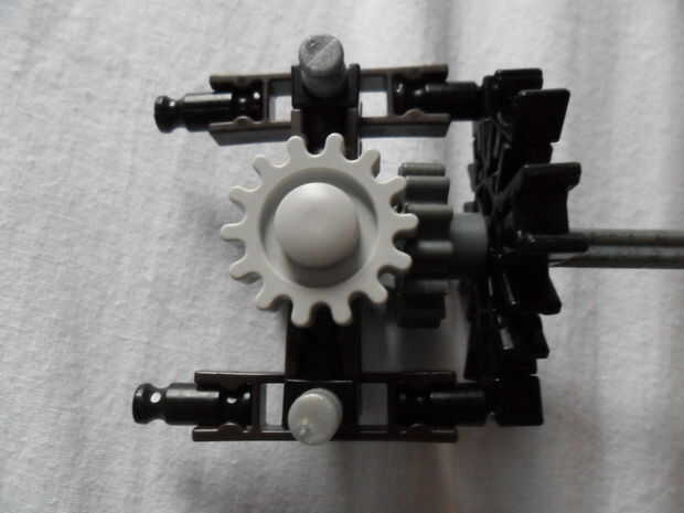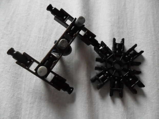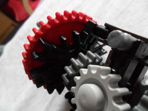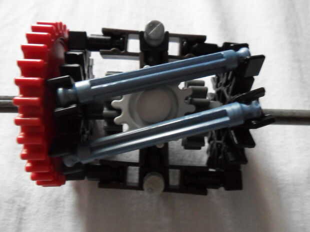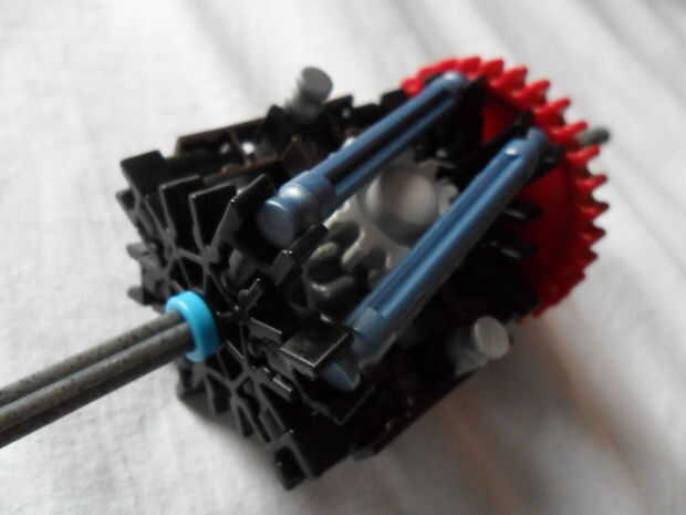 diferencial ha formado. No el más pequeño, pero aún fresco. Lista de partes: 4 engranajes de esquina, 1 engranaje Normal (o rincón) 1 engranaje grande, barras pequeñas de 36 negro/verde, 39 barras blancas, 9 barras rojo, barras amarillo 1, 1 barra la
