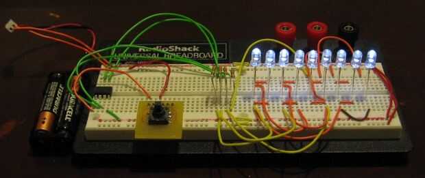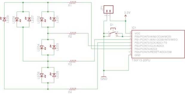 Elegí la tiny13 porque tenía varios en mano a recoger el polvo. Para el control de 9 leds sin un registro de desplazamiento (otra parte) que necesitaba para implementar una charlieplex.