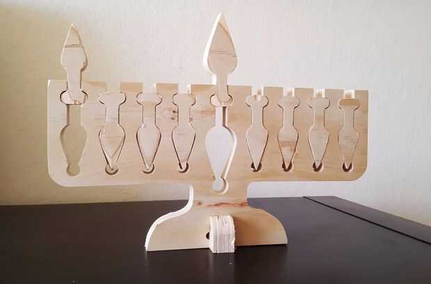 Con acceso a un shopBot, puede recortar esta menorá en unos 20 minutos. La belleza del diseño es que funciona sin velas. Sólo sacar la vela del tirón 180 grados y empuje hacia atrás.
