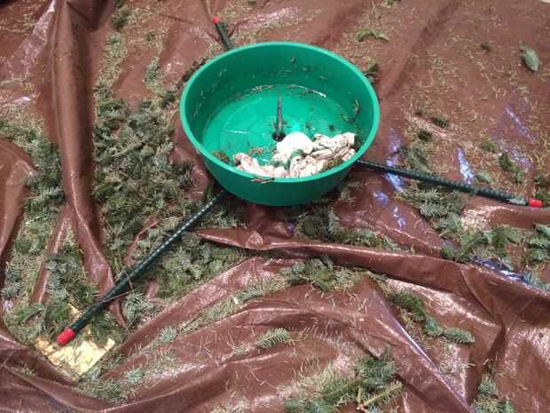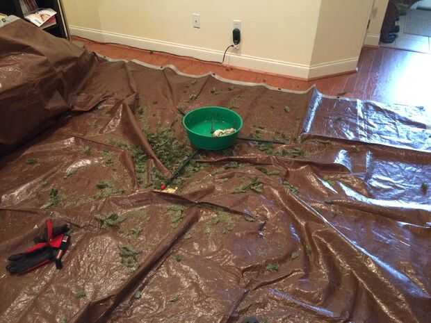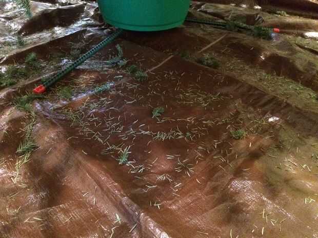 Compruebe hacia fuera de la lona, ahora que el árbol se ha ido. Probablemente se cubre de agujas y ramitas y palos. Mina fue. Apreciar que está en la lona y no su piso o tapete o alfombra. No es divertido salir especialmente si las agujas están mal.