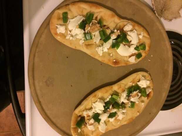 Coloque su plana-pan en el horno y seguir las indicaciones que vienen con el pan plano para ver cuánto tiempo estarán allí para. Si no dice cuánto tiempo, comience con control sobre ellos en la marca de 5 minutos. Normalmente nuestros están en el horno durante unos 6-8 minutos. Suficiente tiempo para la cocina limpia y sacar platos y bebidas para la cena!
