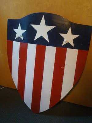 Desde allí, mide el ancho del escudo y había dividido por el número total de franjas. Me dejó con las rayas eran 2 3/8" ancho alternando blanco y rojo.