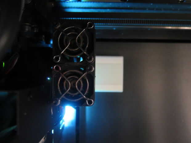 Así que vamos a empezar con la fruta de bajas, el micro de bobina de inducción. El cabezal de impresión tiene todo tipo de motores y ventiladores funcionando con diferentes tipos de control numérico, lo que significa que más o menos estamos garantizamos hará sonidos bastante para nosotros. Todo lo que tenemos que hacer es poner el micro en el vidrio sobre la cama de impresión y auge: