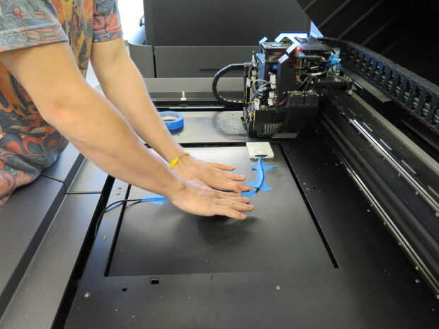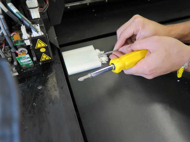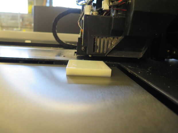 - Abrir la impresora, pero dejar modelo donde está. Debido a la manera imprime el objeto, espera una cierta cantidad de "alfombra" que bajo el modelo, por lo que si nos pegamos a un modelo limpio, impreso en, no es la altura correcta.