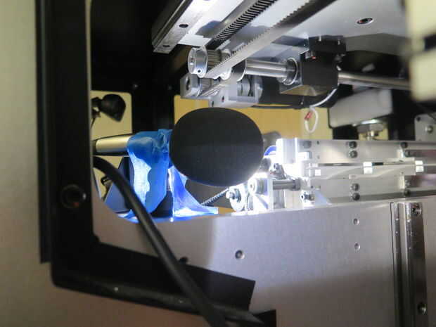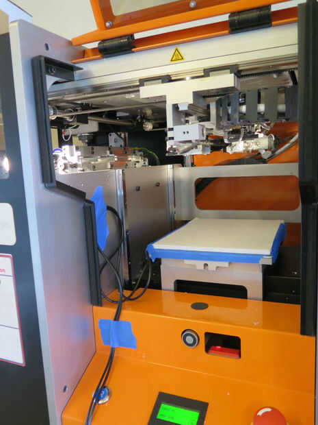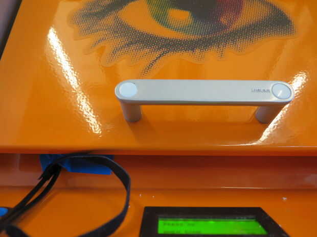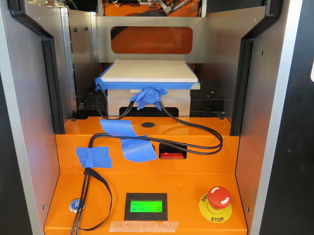 Ahora para la diversión parte, tratando de entrar a la plataforma de la máquina. Grabado en la plataforma de grabación donde papel normalmente ir, lo que significa cuando la máquina hace su secuencia de calibración (mover la plataforma hacia arriba y hacia abajo), que registrará esto como el inicio de la impresión.