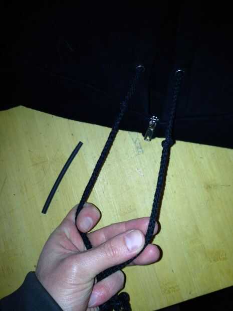 Vamos a cortar la cuerda justo por debajo de los nuevos nudos, pero estos cordones tienden a deshilacharse. Así que estoy usando un poco de tubería del encogimiento del calor para crear un herrete!