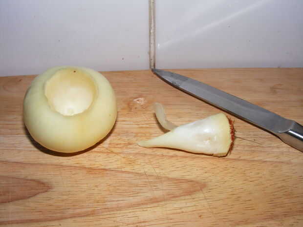 De todos modos, su cuchillo de cocina le proporcionará con la palanca requerida, y la cebolla sí mismo será el punto de giro que necesita. Introduzca con cuidado el punto de su cuchillo de cocina en la incisión que hicieron y suavemente palanca contra la raíz de la cebolla para aflojarlo. Probablemente necesitarás hacer todo esto alrededor de la raíz (dependiendo de cuántos años es la cebolla).