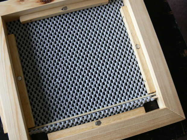 Tomé un enfoque particularmente elaborado explicado en las notas en las fotos. Esto era enteramente porque quería agujeros del dedo para empujar hacia arriba Si no le molesta sobre eso, una plaza rápidamente con cinta elástica le permite apenas como rápidamente pop el panel hacia fuera de debajo empujando simplemente hacia arriba en el centro.