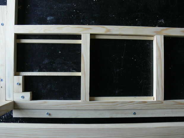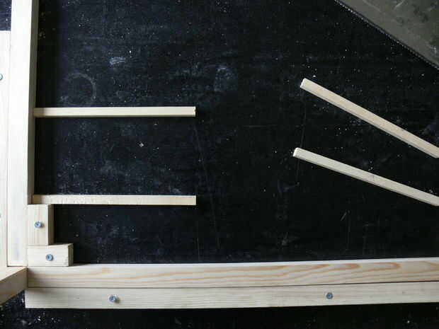 En secuencia, fija las dos barras de interiores pequeño a la larga lateral utilizando a espaciadores contra la plantilla (imagen 2), luego cayó los bares montados en el bastidor exterior poner juntos en el último paso y fija en todos los puntos de contacto (imagen 3).