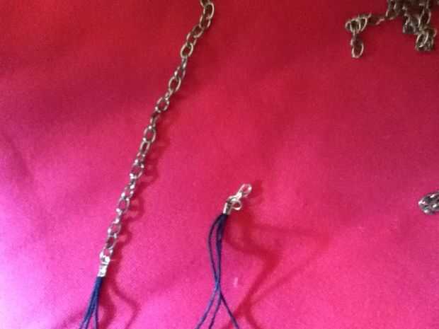 Ponga un extremo de metal en el otro lado después un broche en uno y una longitud de cadena en el otro. Usar su hermoso collar y demuestran!