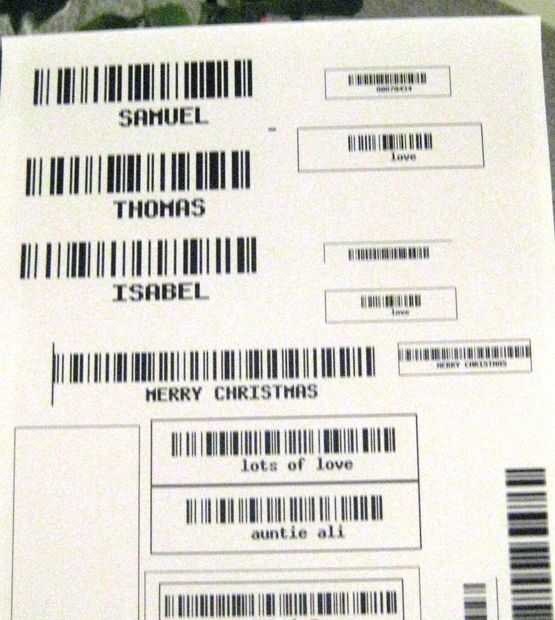 Mi plan original era para imprimir los códigos de barras en papel de pegatina, pero no tengo ninguna a mano por lo que sólo la imprimí en papel normal usando mi impresora laser.