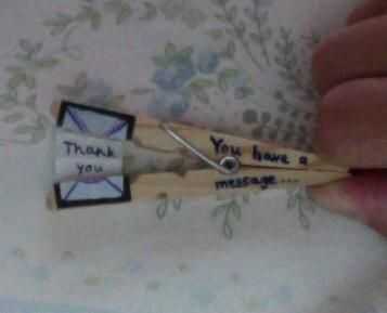 Su mensaje de pinza para la ropa se hace por fin! Ahora irá por ahí y utilizar para traer una sonrisa a la cara de otra persona. ;)