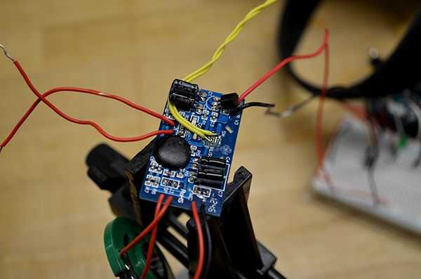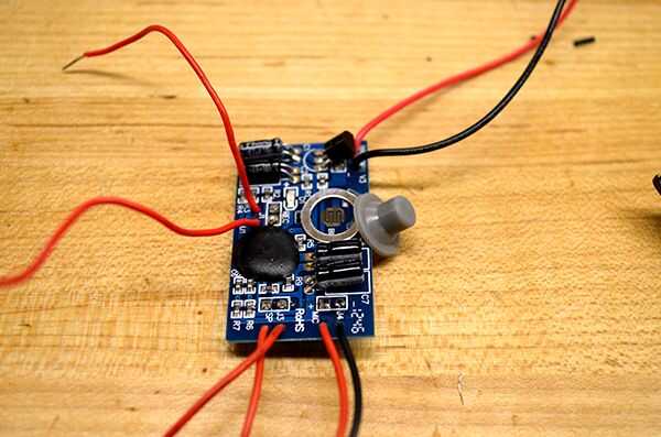 Lo que descubrí experimentando es que tocar los cables es crear realmente un corto circuito y activa el micrófono. Puesto que vamos a regular el gatillo de grabación mediante el sensor de presión a través de Arduino, realmente sólo es necesario uno de estos cables. (En mi tablero que era la izquierda — más cerca de la entrada de la batería, pero se recomienda mantener tanto accesible en caso de que varía al tablero.)