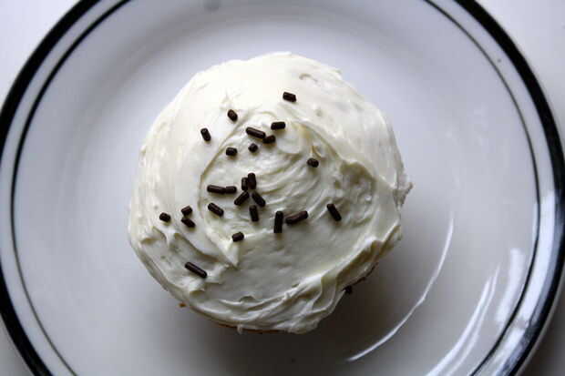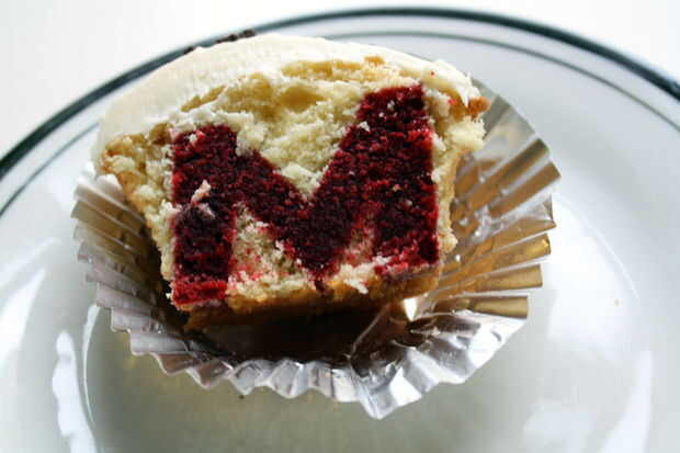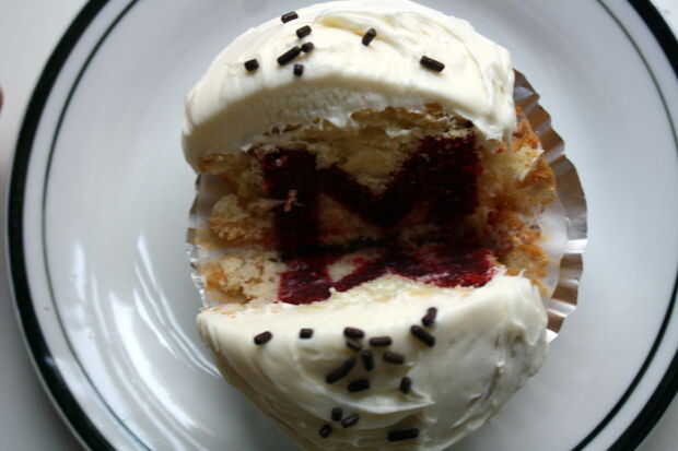 Helada de los cupcakes y añadir cualquier salpicaduras / golosinas te gusta. Antes de helar, asegúrese de que nota que sus cartas están dentro de tus cupcakes! Esto es importante, para cortar correctamente la Magdalena por la mitad.