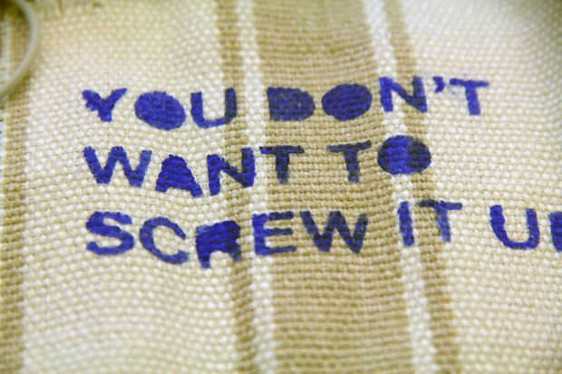 Consejo: si se diseñará su diseño, frote suavemente la brocha sobre el textil en lugar de pintura en. También, ser conscientes de cuánto la pintura es su pincel. Si utilizas demasiada pintura, se purga y (posiblemente) arruinar su diseño.