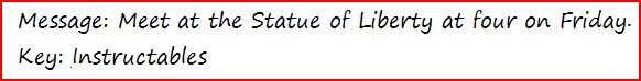 2. la clave-la clave debe conocerse por todo el mundo que desea ser capaz de descifrar el mensaje. Ya es más seguro que corto y al azar las letras son más seguras que una palabra. También debe ser fácil para que todos puedan recordar.