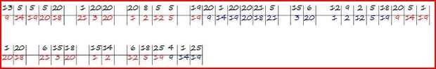 2. Escriba el primer número de su clave (9) debajo del primer número de su mensaje (13)