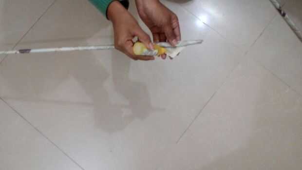 primero cortar el papel en tres partes iguales, tome una pluma o lápiz y enróllelo y pegar los puntos finales