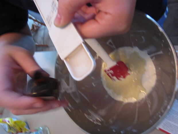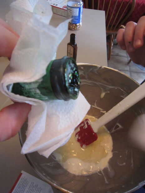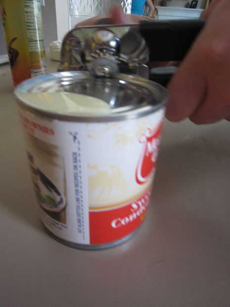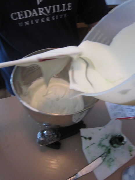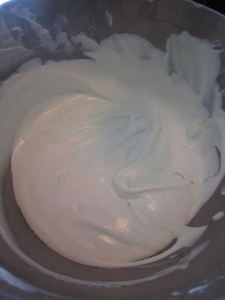 -Combine la leche condensada azucarada, extracto de menta y colorante (si se desea)