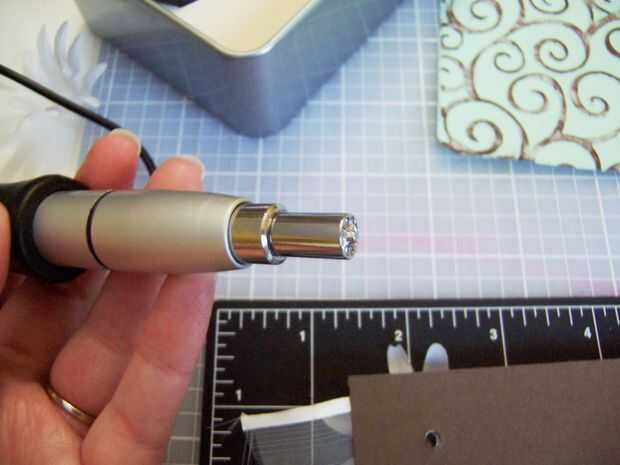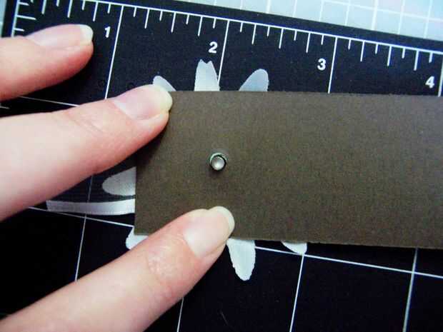 Inserte el cierre en el agujero que a puñetazos y luego se voltea la pieza completa por lo que se expone al aire libre la parte posterior de la presión. Cambiar la punta de su Setter instantánea a la punta de ajuste de ojal de 1/8". Perforar el setter de ojete en el abierto la parte posterior de la presión a lo. Después de haber ajustado lo, tal vez aplanar un poco más golpeándola ligeramente con un martillo, pero esto no es necesario.