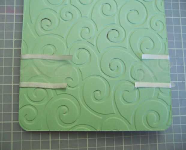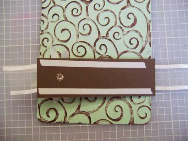 Adherir la pieza de sentimiento con la flor a la pieza de relieve. Dale la vuelta y adherir los extremos de la cinta a la parte posterior de la pieza grabada.
