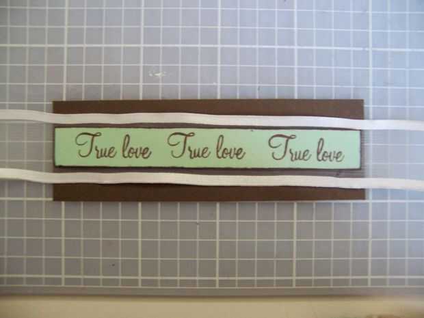 Se adhieren a la pieza de sentimiento para el centro de la cinta y la tira de cartulina marrón.