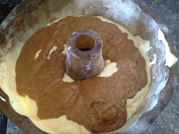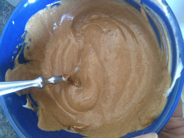 Quitar 1 taza de la masa y mezclar con el café, revolver bien