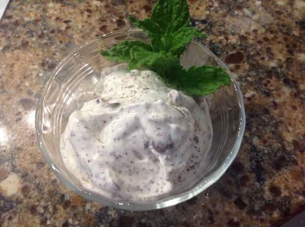 este helado de menta es tan asombroso que incluso no es necesario ningún chocolate. Sabe mucho mejor que la tienda compró menta helado!!!!Ingredientes:2 tazas helado de vainillagran puñado de hojas de menta fresca, lavar y quitar los tallosInstrucci