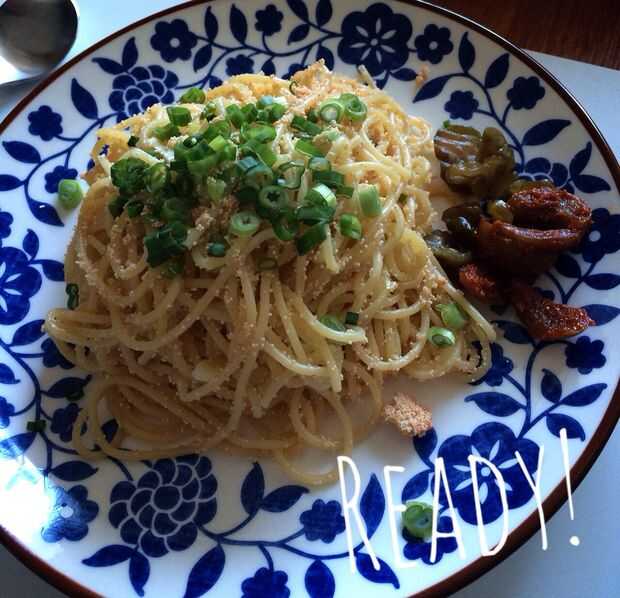 Aglio E Olio con pan rallado de limón de la rampa de la rampa