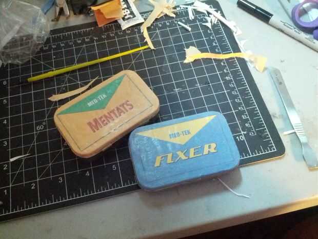 Este apoyo vino alrededor a mí debido a que guardar mis medicamentos básicos (analgésicos, antiácidos y antihistamínicos) en un altoid tin. Mis compañeros de trabajo a solicitar uno de estos tres ya confundido en cuanto a por qué yo les estoy dando una lata de la menta. Mis compañeros de trabajo jugador sabrá lo que es y asumir que hay dentro de la medicina. Mis compañeros de trabajo no-gamer (o al menos espero) ver el logo de Med-tek y saber tiene que haber algún tipo de medicina interior.