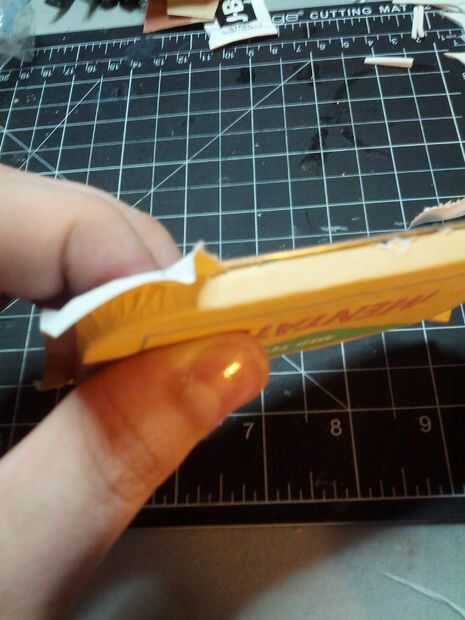 Coge la navaja xacto y poner el papel sobrante. Ser lento con esto, sólo para estar seguro no ejecuta en un bolsillo oculto de todavía húmedo Mod Podge y rasgar inadvertidamente la etiqueta!