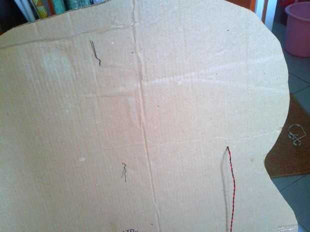 - También hacer un agujero con algún objeto puntiagudo en la cabeza de cartón justo detrás de los engranajes para pasar cables eléctricos (ver imagen)
