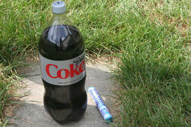 Abra la soda de dieta y coloque sobre una superficie plana.