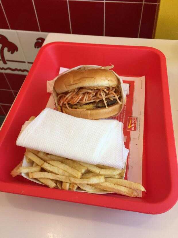 Recientemente hicimos una hamburguesa in-n-Out especial para broma de unos amigos. In-n-Out es la gran cadena de la hamburguesa de la costa oeste de Estados Unidos.