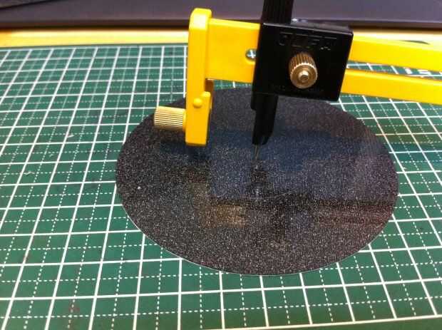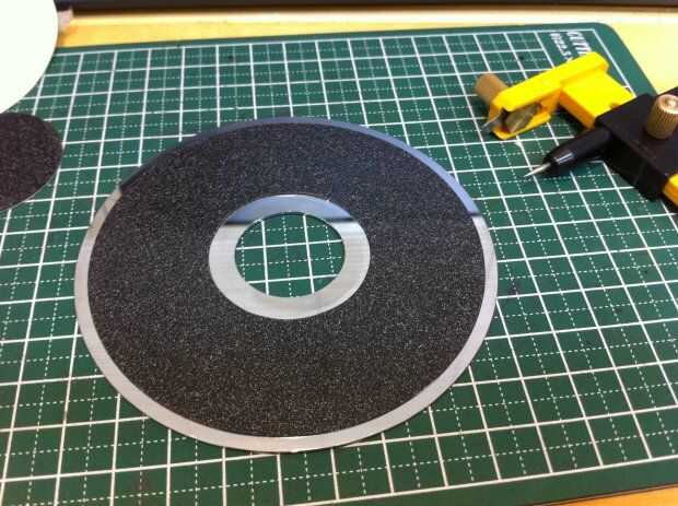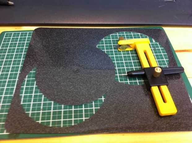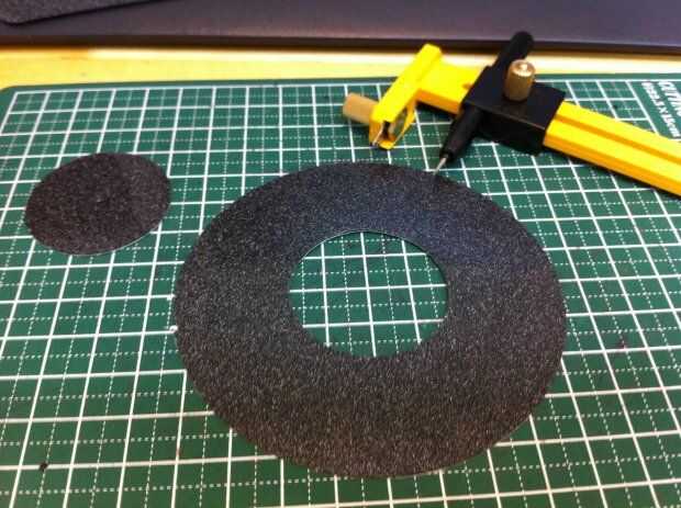 1 cortar mousepad usando un cortador de círculo. Diámetro es de unos 5mm más pequeño que el plato del disco duro.