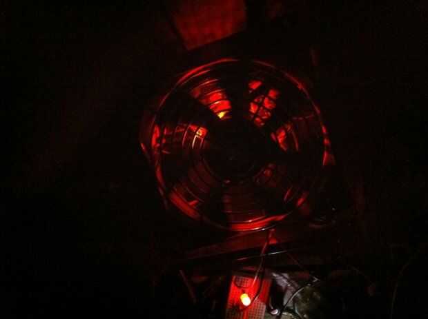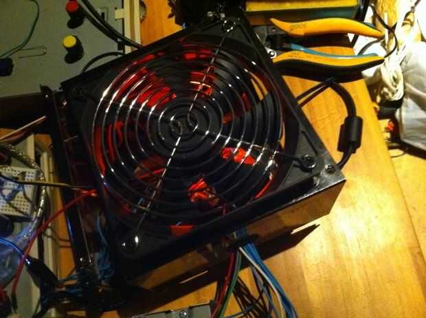 Gire el ventilador de enfriamiento en lentamente por PWM y enciende el LED en caja de suministro eléctrico.