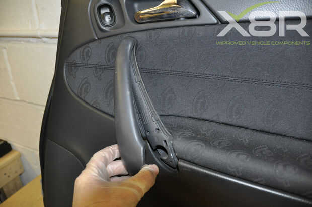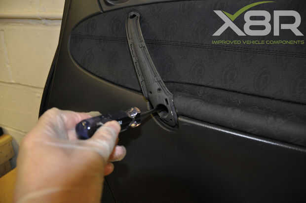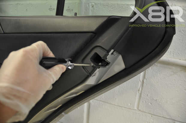 Retire los dos tornillos torx en la cubierta de la manija (T25, T30)