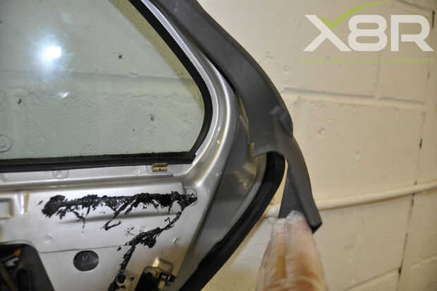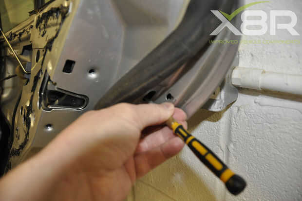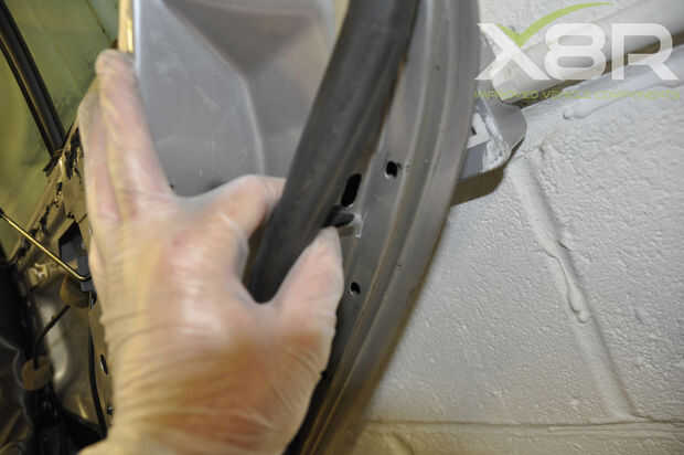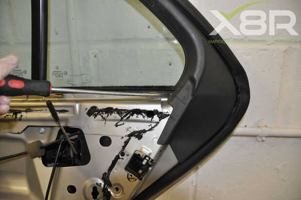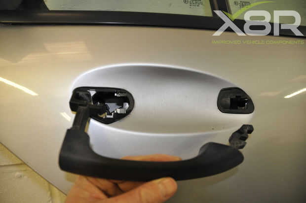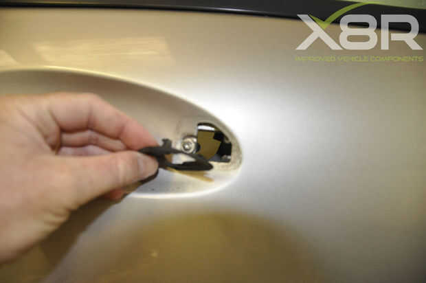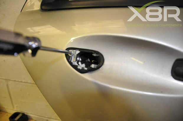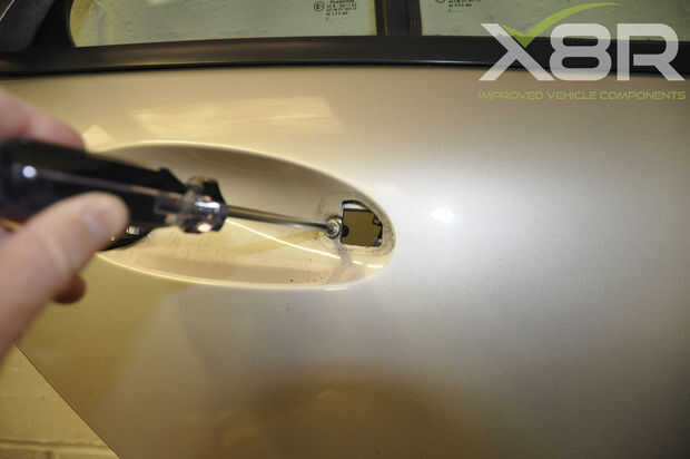 Retire la placa muerta y desatornillar los torx T20 sosteniendo la manija de puerta exterior.