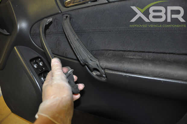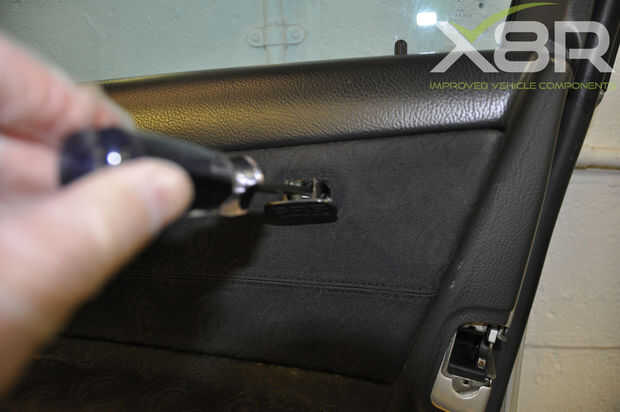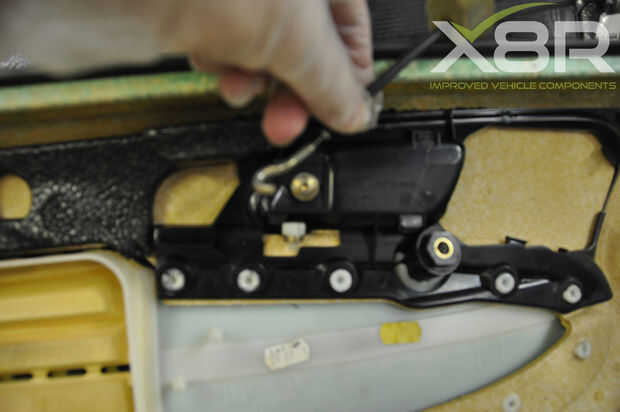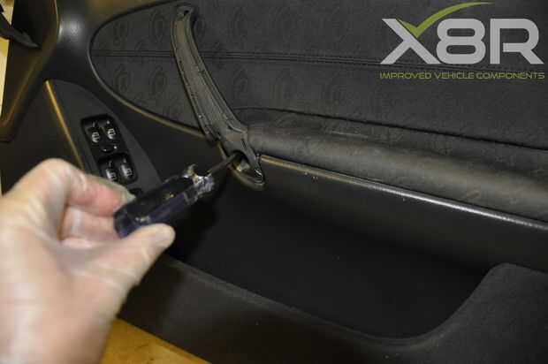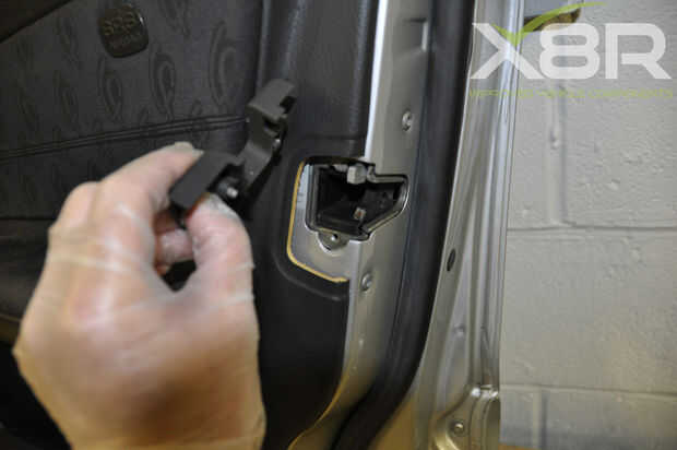 Retire los dos tornillos torx en la cubierta de la manija (T25, T30)