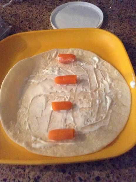 Tomar las zanahorias bebé y recoger uno y romper en dos pedazos.