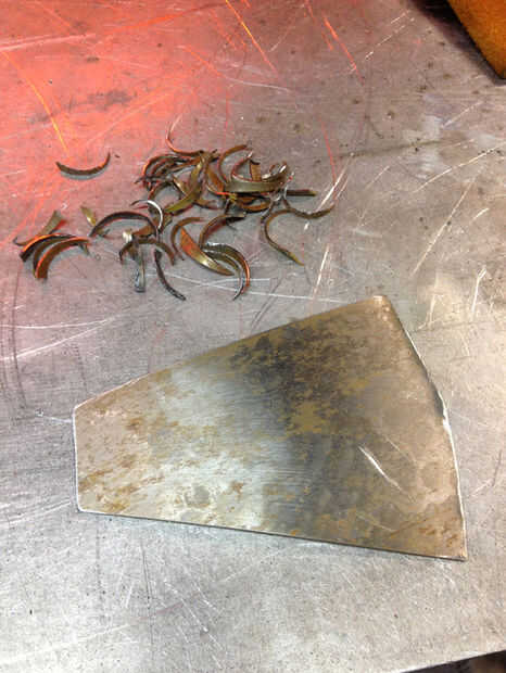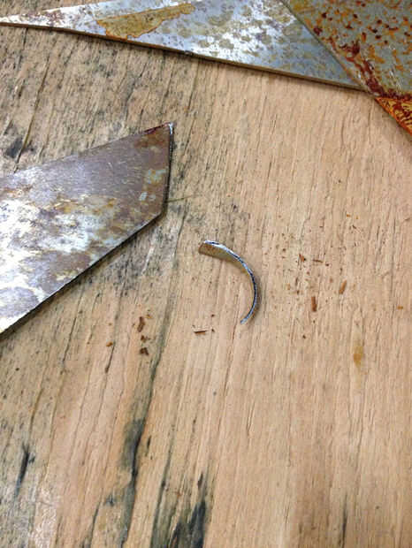 Hice el merkin sí mismo fuera de 22 acero del calibrador. Para la base, cortar una forma aproximadamente triangular. Para el "pelo", recortar pequeños pedazos de desecho usando tijeras, que tienden a hacer las piezas curl como cortan. Soldó con autógena el "pelo" sobre la base con un soldador TIG, a partir de la parte inferior y mover hacia arriba. Llevó a cabo los "pelos" con un par de pinzas mientras se suelda en. La base curva algo propio del calor aplicado sólo a la parte superior de la misma, y doblado un poco más a mano hasta que tenía una forma que me ha gustado mucho.