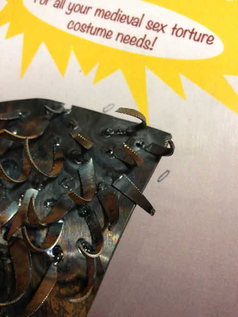 Para adjuntar el merkin a su respaldo, utilicé lazos zip. Puso donde quería, luego dibujó pequeñas marcas para los agujeros de por que los lazos zip pasaría. Corte los orificios con un cuchillo, tres empujadas zip lazos a través de y les zip.