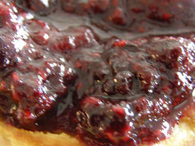 Bien. No hay cucharas o espátulas son necesarios hasta que usted Vierta la mezcla en un recipiente (reutilizar un viejo tarro de jalea y estoy pensando en hacer mi propio sello) y cucharón hasta la última gota de jarabe de color rubí codiciosamente. Sugiero revisar la mermelada una vez cada cinco o diez minutos darle una buena sacudida la olla sobre la hornilla a guardar las bayas de la quema. Una vez que ha cocinado la fruta abajo y la mezcla es la consistencia de la mermelada de sus sueños (lisos o gruesos), tomar la olla del fuego y deje enfriar.