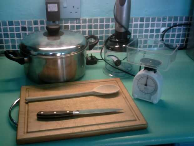 Una sartén de fondo pesada (una amplia uno trabaja mejor y reduce el tiempo de cocción)