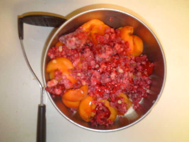 Lavar y cortar los albaricoques por la mitad, quitar los hoyos. Reservar las mitades de albaricoque