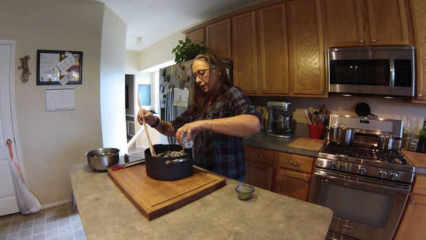 SymmetriPi: pastel de chocolate picante y arándano con corteza de palomitas de maíz