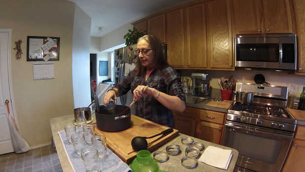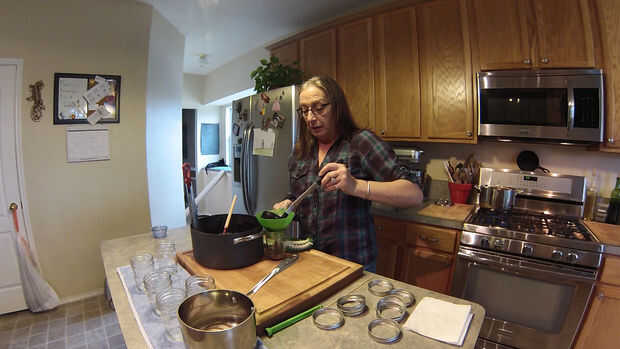 Retire la mermelada del fuego, añadir ralladura de Lima. Usando un embudo de boca ancha diseñado para enlatar, vierte la mezcla de fruta caliente en los frascos.