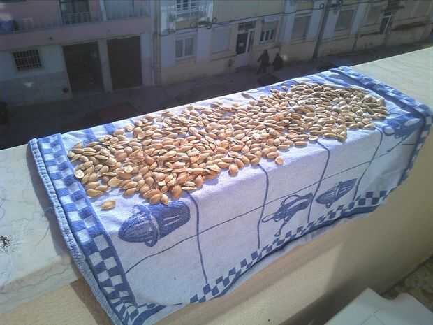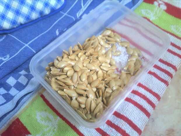En el tiempo, tomar un descanso de la corte. Obtener las semillas, repartirlos en un paño, Espolvoree sal y colocarlos al sol para secar. Es un método más rápido para secar en el horno, lo suficiente como para sacar la humedad.