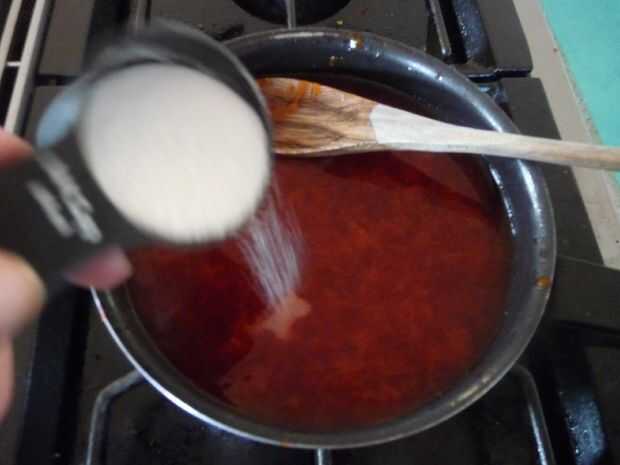 - Añadir más azúcar y el agua si es necesario. Asegúrese de cocinar a fuego lento para que el azúcar se haya derretido.